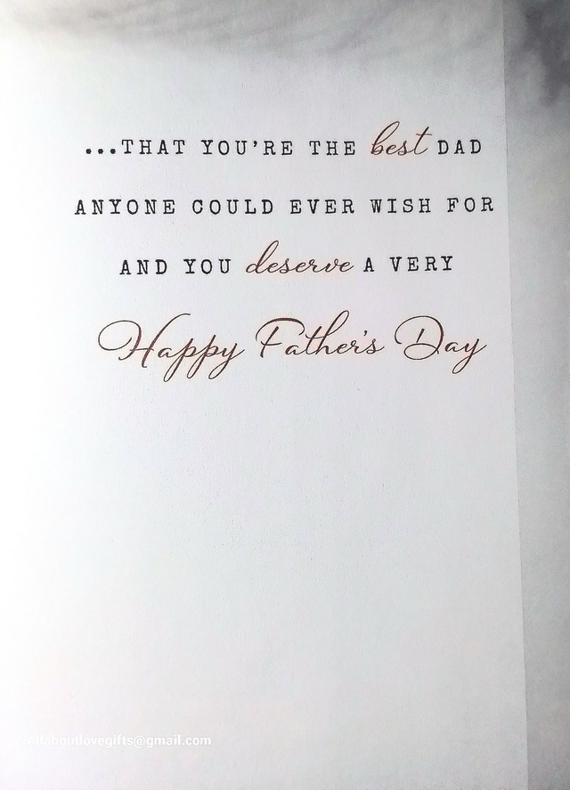 Celebrate Dad this Father’s Day with a stunning greeting card from your son, designed to perfectly convey love and heartfelt sentiments. This beautifully crafted card features elegant artwork and touching words that express genuine appreciation and affection, making it an ideal gift to strengthen the father-son bond. Whether accompanying a gift or standing alone, it’s a meaningful way to show Dad how much he means to you. Crafted with premium materials for a polished finish, this card ensures your message stands out. For personalized orders or inquiries, contact allaboutlovegifts@gmail.com. Make Father’s Day unforgettable with a card that speaks directly from the heart!