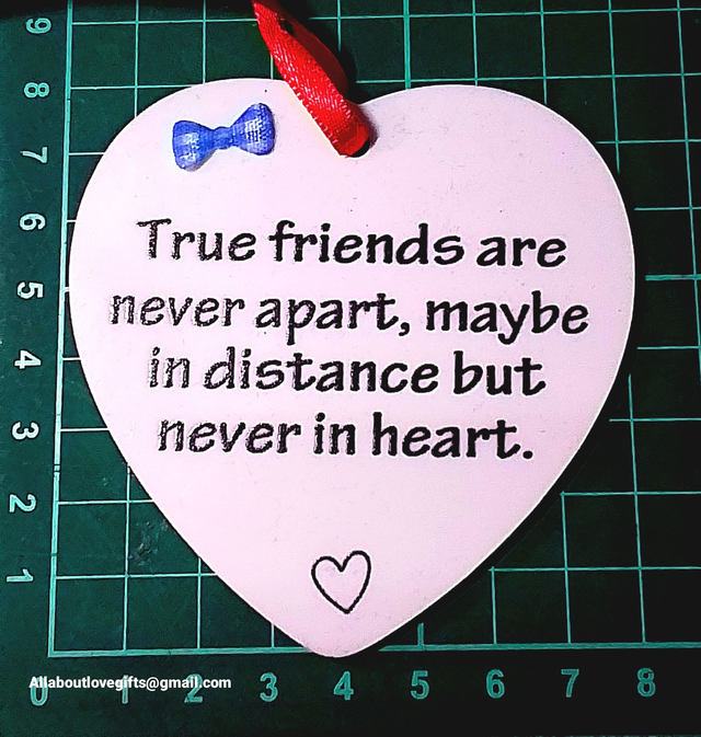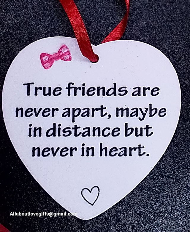 Celebrate cherished friendships with this Thoughtful Words Plaque, featuring the heartfelt quote: "True friends are never apart, maybe in distance but never in heart." Crafted with attention to detail, this beautifully designed plaque includes an elegant bow and a sturdy ribbon for easy hanging. Perfect for gifting or personal display, it serves as a daily reminder of enduring bonds and emotional closeness despite physical distance. Ideal for living rooms, bedrooms, or office spaces, this plaque adds a warm, sentimental touch to any setting. Share the spirit of friendship with a meaningful decor piece that inspires connection and love.