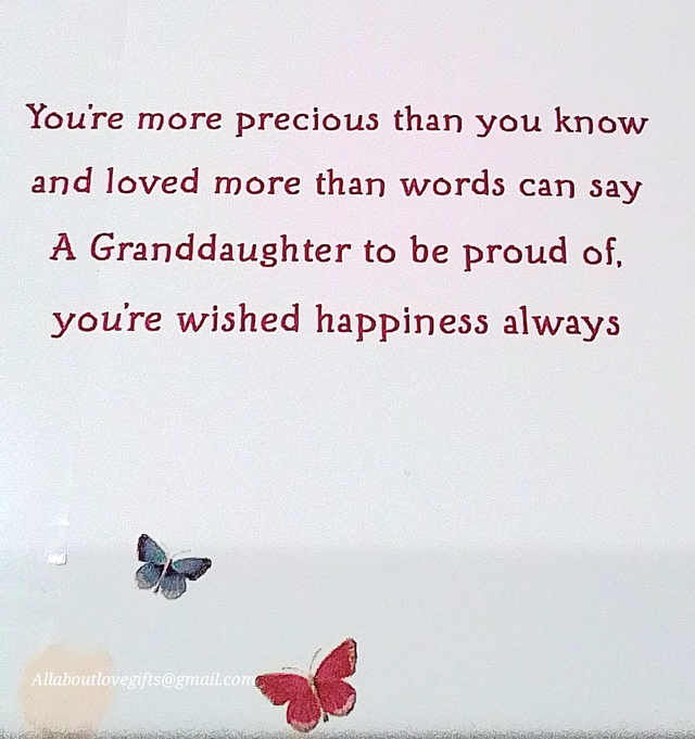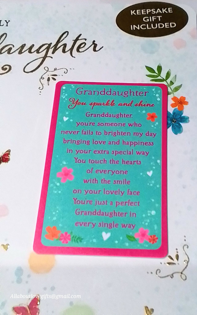Granddaughter Birthday Card with Sentiment Keepsake Card.