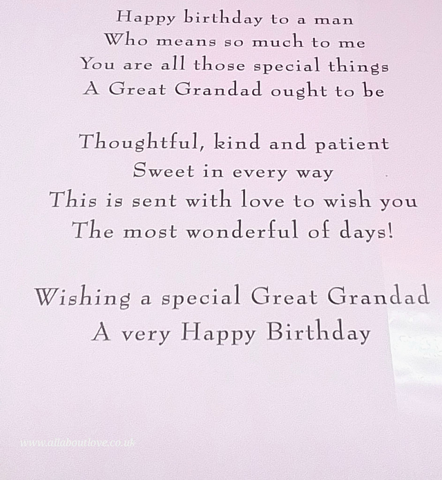 Great Grandad Quality Birthday Card with Sentiment words Inside.