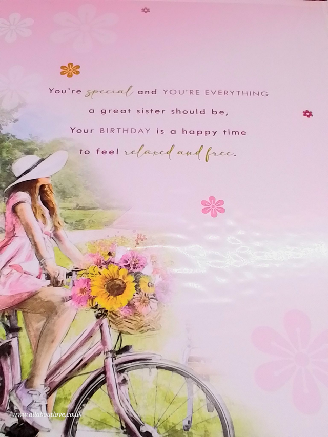 Sister Birthday Card Foil Lettering Girl on a Bike Design