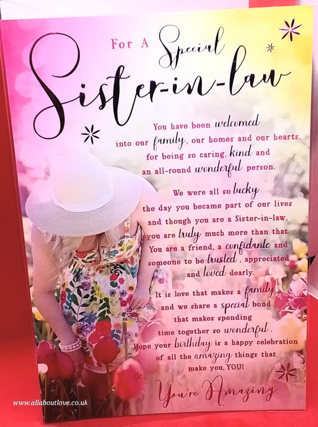 Sister-In-Law Happy Birthday Card Gold Foil Premium Quality