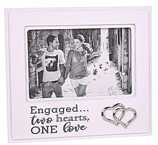 Celebrate a couple's special moment with this beautiful white photo frame from Shudehill Giftware. Sized perfectly to hold a 6x4in photo, this frame makes for a great gift to commemorate the special occasion. The elegant design of the frame adds a touch of sophistication to any room, while the white finish keeps it looking bright and fresh. Use it to display cherished memories of the happy couple or to showcase your own photo. This photo frame is a great choice for anyone looking for a stylish and practical way to celebrate a special moment.