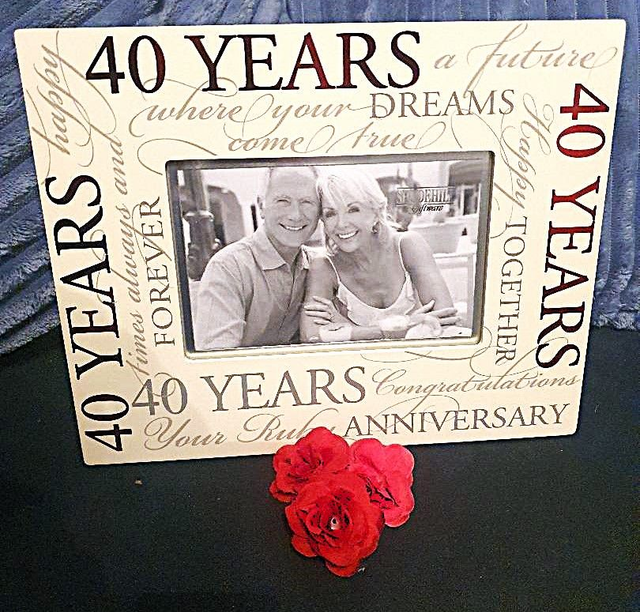 Celebrate your parents or your own 40th anniversary with this elegant Ruby Wedding Anniversary 40 Years photo frame. This beautiful frame is a perfect gift for your husband, wife, or parents to commemorate this milestone event. The frame features a stunning frame for a 4x6 photo and is freestanding. This keepsake is sure to become a cherished treasure for many years to come and is a wonderful way to show your love and appreciation for your special someone.