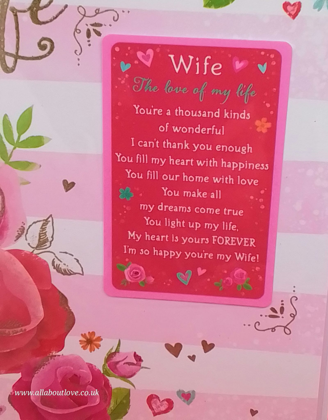 Wife Birthday Card Sentiment Verse, keepsake Card included